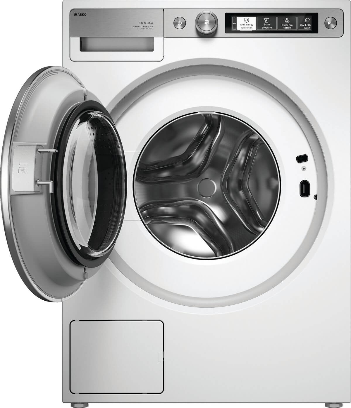 ASKO W7096XW ist eine Waschmaschine, die in Schweden entwickelt wurde und gebaut wurde, um 20 Jahre zu halten. Es hat eine Kapazität von 9 kg und 29 verschiedene Programme für ein einfaches und effizientes Waschen. Dank der Stahldichtung ist die Maschine besonders hygienisch, und mit Quattro Construction 2.0 erhält man einen ruhigen Betrieb mit minimalen Vibrationen, selbst bei maximaler Drehzahl von 1600 U/min.